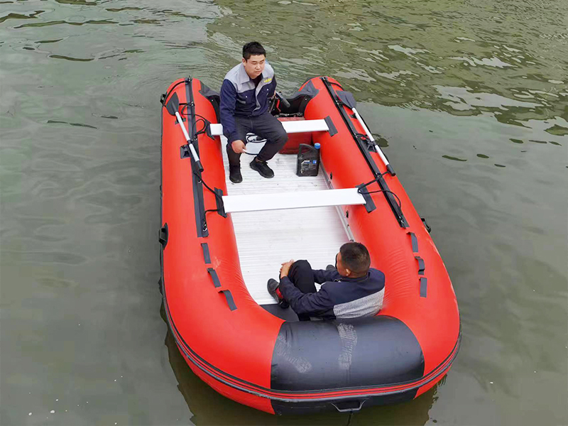5.采用進(jìn)口專用汽艇布料 1.2T1000D/PVC氣密性、耐磨性極好、使用壽命長,厚度≥1.2mm。底部有防護(hù)。